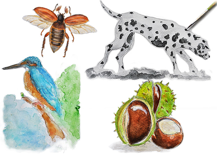 lebensechtere illustrationen von pflanzen und tieren